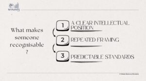 Her structure was elegant and precise. What makes someone recognisable? First, a clear intellectual position. Second, repeated framing. Third, predictable standards. This gave the audience a powerful reminder that a strong personal or firm level presence is not built through random activity. It is built through disciplined consistency. In a field where many professionals hesitate to become more visible because they do not want to “sell themselves,” that message landed well.
