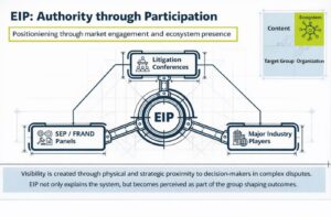 Maria Boicova Wynants showed that authenticity depends on integrity, recognisability, and disciplined simplicity. Johannes Ernicke showed that AI is changing the competitive environment and forcing firms to rethink where and how they create value. Tobias Denk demonstrated that visibility becomes effective only when it is structured around the right source of authority. Theo Grünewald explained why events and formats only work when they are embedded in a full system of positioning and follow up. Dr. Jörn Plettig and Theo Grünewald finally showed how even excellent IP topics fail unless they are translated into context, narrative, and manageable entry points.