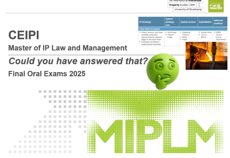 Task 18: Ingredient Branding and Monopoly-in-a-Box In the final oral exam of the CEIPI Master Program in Intellectual Property Law and Management (MIPLM) 2025, students are once again tested on their ability to connect IP law with practical business m ...