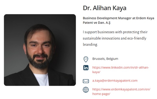 The cluster makes his positioning unambiguous and searchable—an essential foundation for authority building. It also consistently profiles him as Business Development Manager at Erdem Kaya Patent ve Danışmanlık A.Ş. (Brussels), which clarifies seniority and context without diluting his personal brand. Here is his expert page at the 🔗dIPlex.
