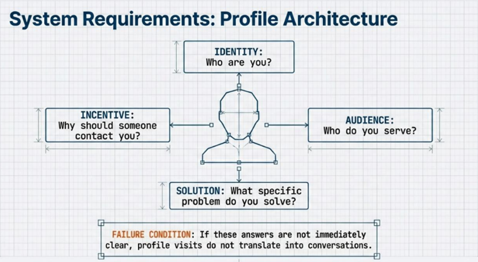 This model explains why “better posts” alone often do not help. If your positioning is unclear, you may be seen, but not remembered, and visibility does not become inquiry.