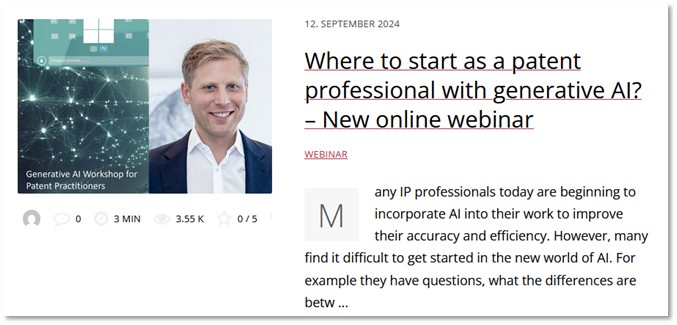 - Reach channels (📝IP Business Academy Blog, 🎧𝗜𝗣 𝗠𝗮𝗻𝗮𝗴𝗲𝗺𝗲𝗻𝘁 𝗩𝗼𝗶𝗰𝗲, 🎯IP Management Pulse): simplify complex topics (e.g., Podcast episode: AI-supported patent application tools) for non-specialists and shareable conversations.